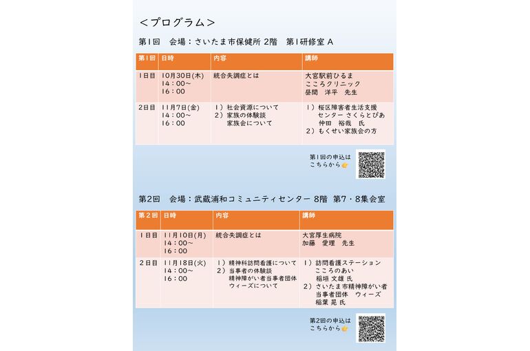 ご興味のある方は、さいたま市保健所の家族教室案内ページをご覧ください。
